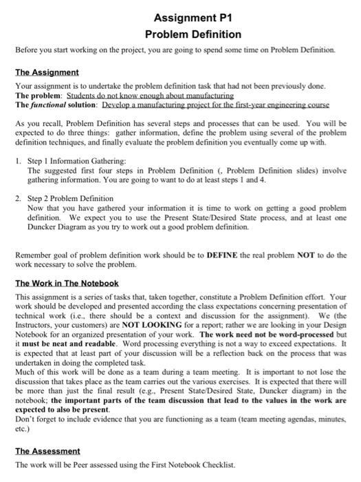 Solved Assignment P1 Problem Definition Before You Start Chegg Com
